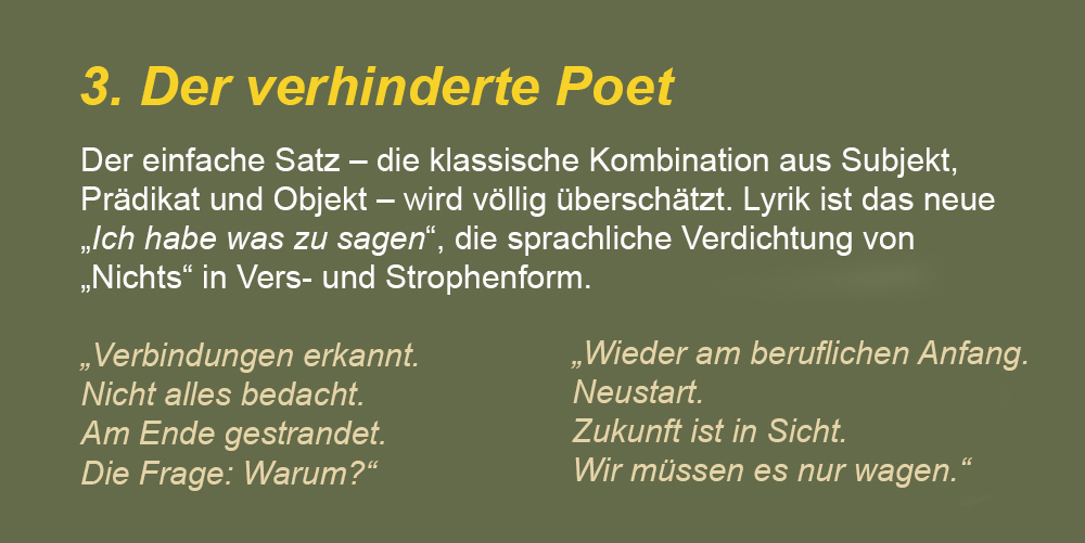 Wie eine Kombination aus den gezeigten Stilmitteln aussieht, illustriert folgender selbst verfasster Beitrag, den ich Anfang April auf LinkedIn gepostet habe. Er ist inhaltlich-stilistisch weder verdichtet noch übertrieben. So sehen mittlerweile schon echte Beiträge aus.